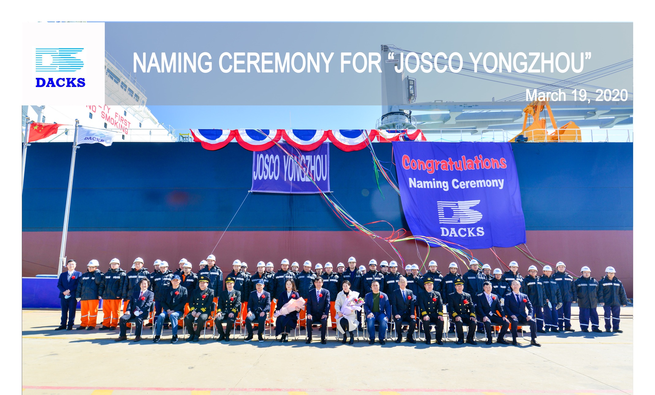 三月的大連,潮平岸闊,春意盎然。3月19日上午,在江蘇遠(yuǎn)洋駐廠監(jiān)造師、NK驗(yàn)船師和“江遠(yuǎn)永州”“江遠(yuǎn)廣州”輪船員等的共同見證下,一場(chǎng)特別的命名交船儀式在大連中遠(yuǎn)海運(yùn)川崎舾裝碼頭舉行。儀式簡(jiǎn)潔莊重,現(xiàn)場(chǎng)吉祥熱烈。