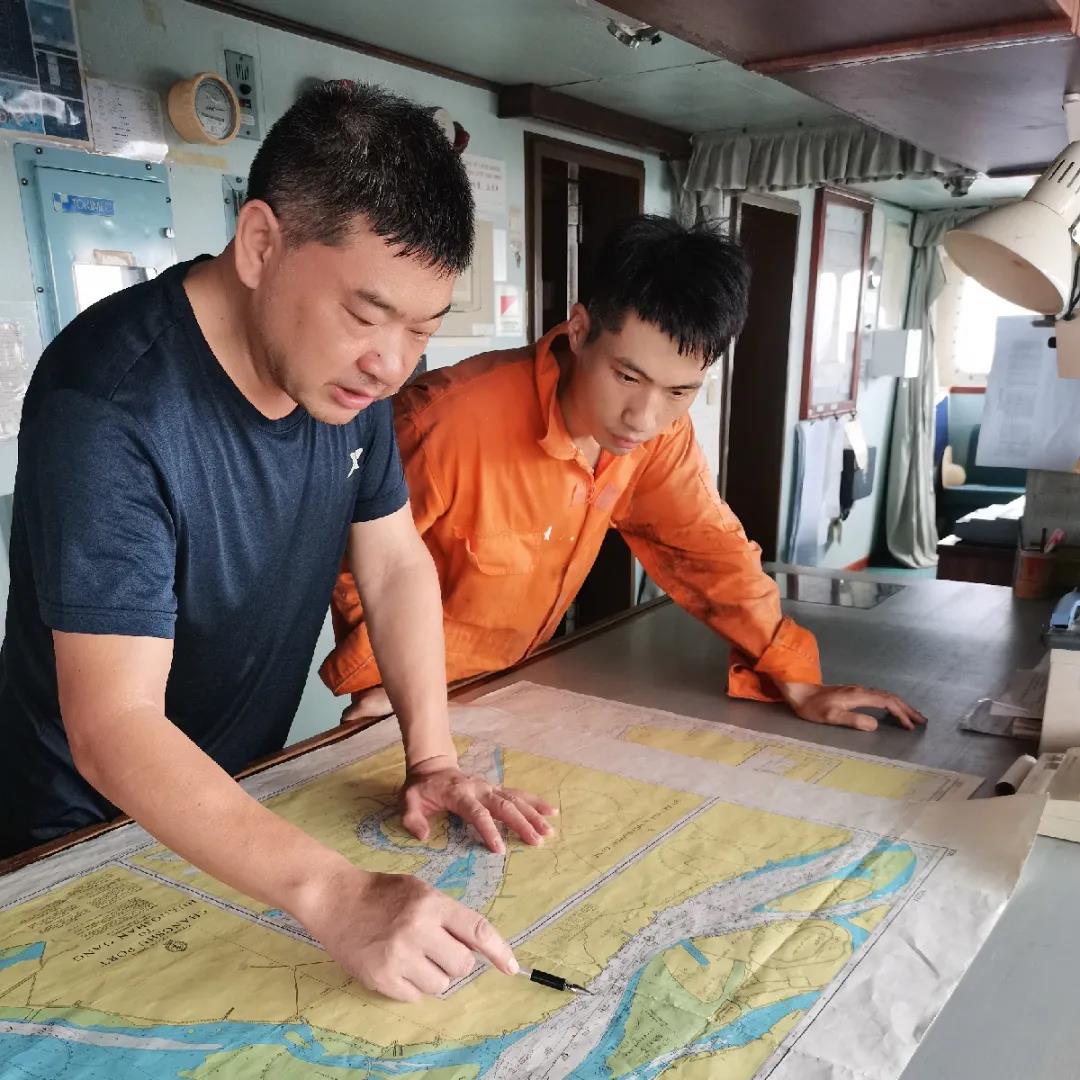陳船長(zhǎng)和駕駛員及時(shí)收集最新的長(zhǎng)江航行通告和相關(guān)信息,了解航道中浮筒位置和航道水深情況,對(duì)照航海圖書(shū)資料和航行計(jì)劃進(jìn)行研究,根據(jù)最新信息將海圖改正至最新,并制訂出最佳的航行和操作方案。